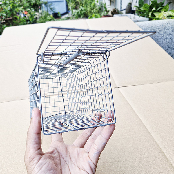 - Gài bẫy: cho mồi vào vị trí chỉ định bên trong lồng và gài cửa bẫy. Thao tác cực kỳ đơn giản và an toàn.