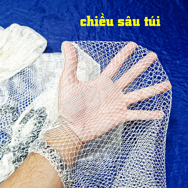 Độ sâu túi: 40cm (túi sâu giúp giữ cá cực tốt, không lo cá thoát ra ngoài khi kéo).