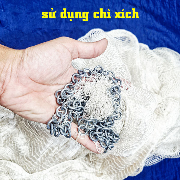 Trả lời: Chì xích có ưu điểm là giá thành rẻ hơn, khi quăng tạo độ xòe tốt và rất dễ bảo trì. Đa số anh em thợ chài hiện nay đều ưu tiên dùng chì xích vì tính kinh tế và hiệu quả tương đương.