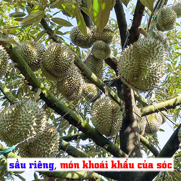 Khi sầu riêng bắt đầu vào cơm và tỏa hương, đó cũng là lúc sóc phá hoại sầu riêng xuất hiện rầm rộ. Chúng thường không ăn hết một trái mà chỉ cắn phá vài chỗ để chọn trái ngon nhất, khiến trái bị hở cơm, thối hỏng và rụng trắng gốc.
